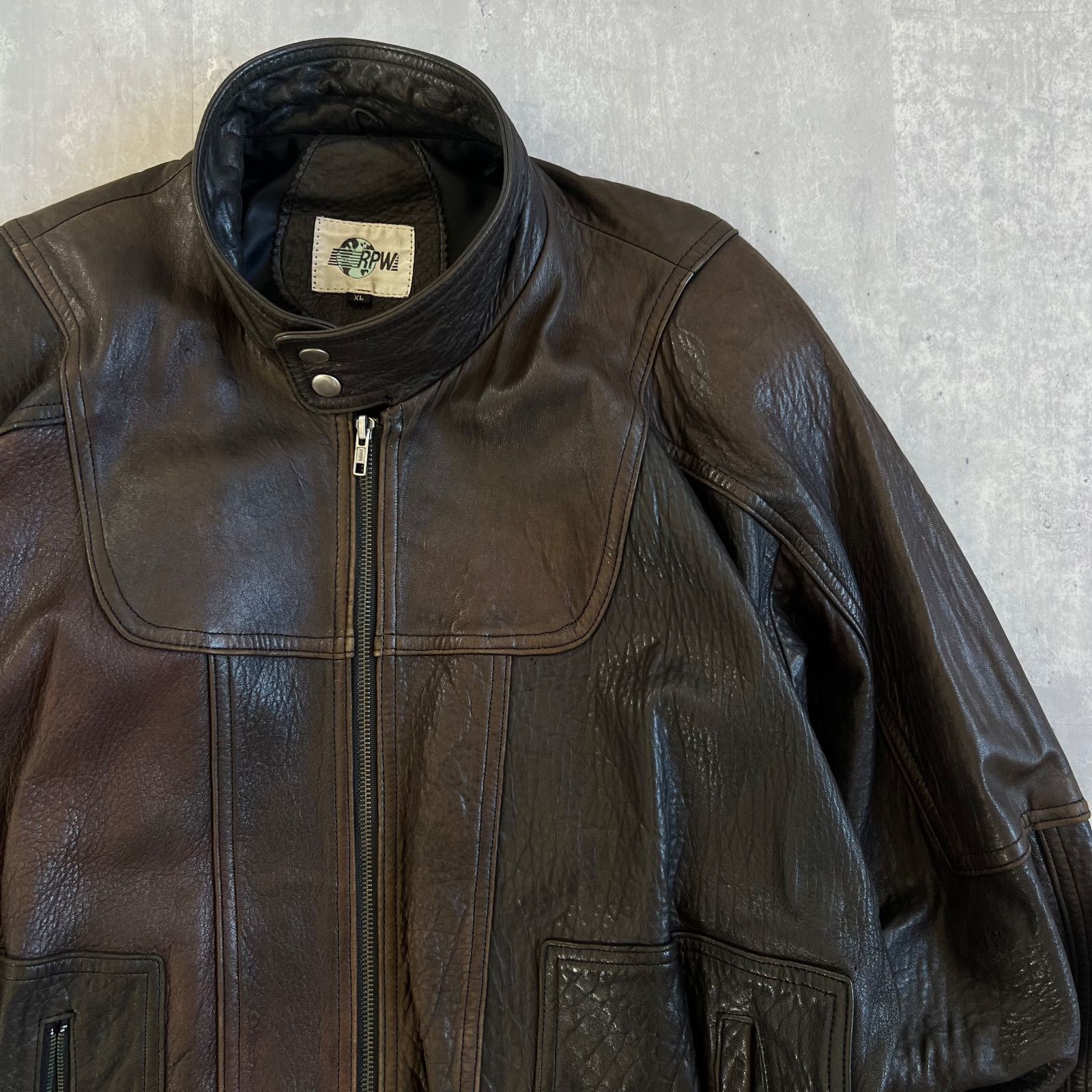 90 s RPW ヴィンテージ ラムレザー スタンドカラーブルゾン XLサイズ ブラック×ブラウン